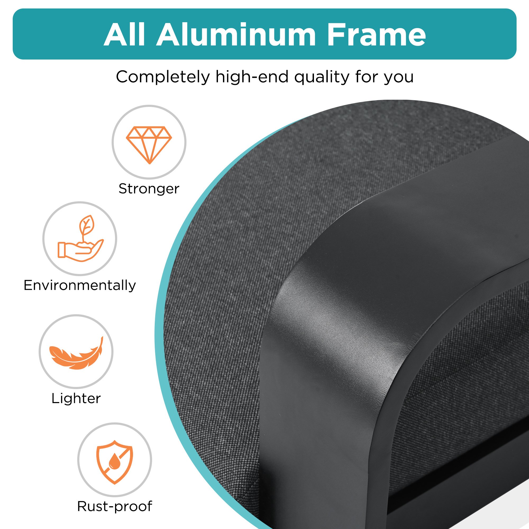 This outdoor furniture set features a durable, lightweight aluminum frame that resists weather damage. Its Olefin fabric cushions ensure lasting durability and easy maintenance. Indulge in luxurious comfort with our 6.7" thick cushions and 7.9" thick pillows, thicker than other sofas, designed to provide maximum comfort during outdoor lounging sessions. The broad armrests and frame offer better support, ensuring sturdy construction with a large capacity of up to 250 LBS per seat. The set's versatile three-piece design fits any outdoor space, and cleaning is effortless with removable, washable cushions.