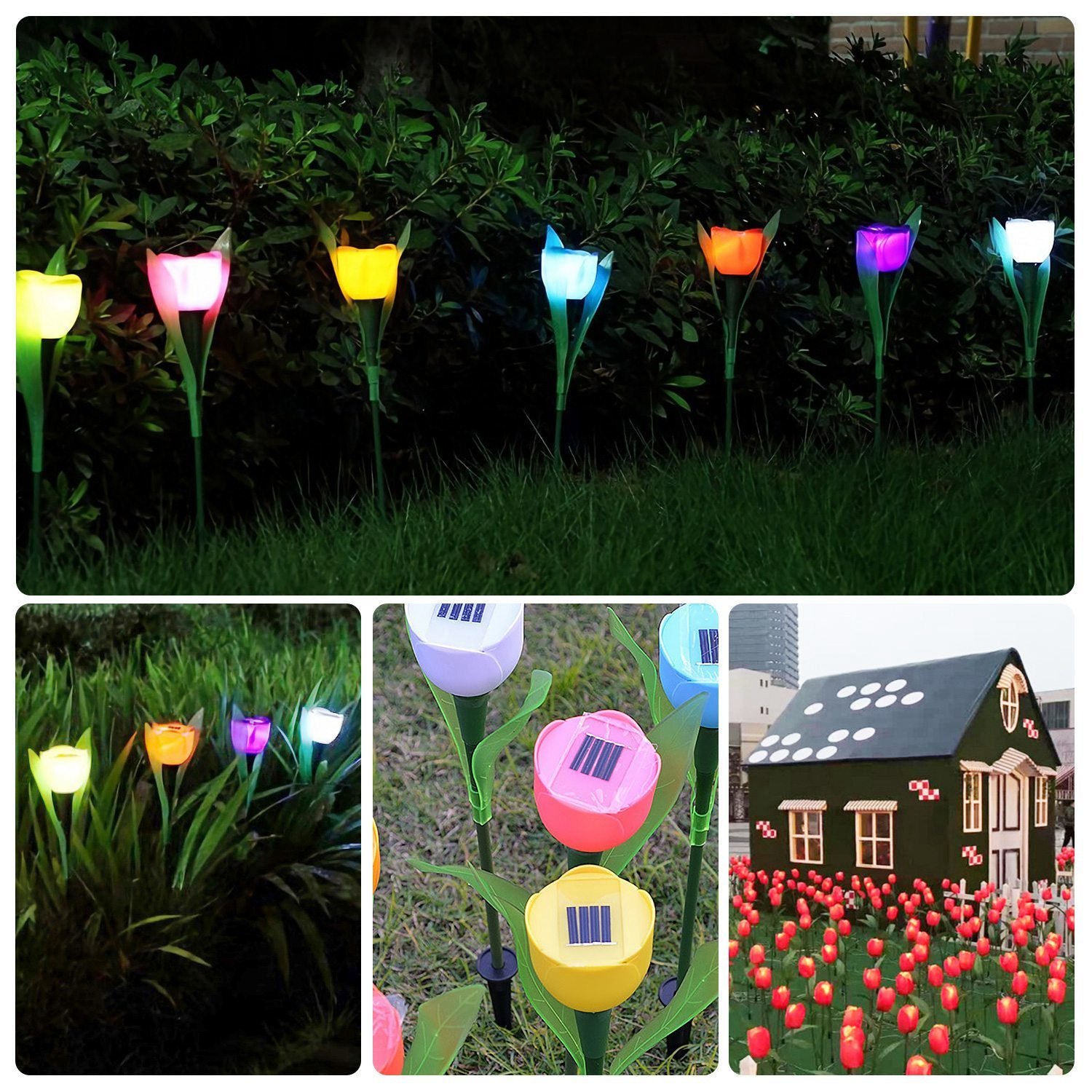 *ELEGANT ADORNMENT*:Our solar garden tulip flower lights designed with lifelike tulip flower shape which can be used to decorate garden,patio,lawn,pathway,flowerbed,Walkway,etc. Illuminate at night and keep your yard fresh during the day.
