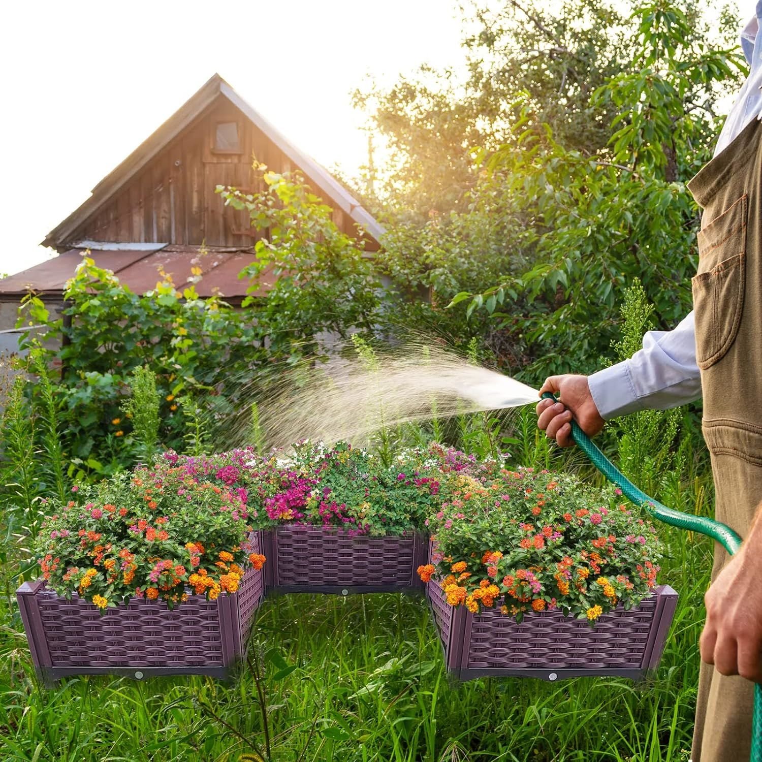 [Self-Watering Device]- The garden bed is equipped with self-watering disk and drain holes, which provide space for reserving excess water and allowing roots to absorb water and nutrition completely. Each side of the box has a water plug for draining or retaining excess water easily.