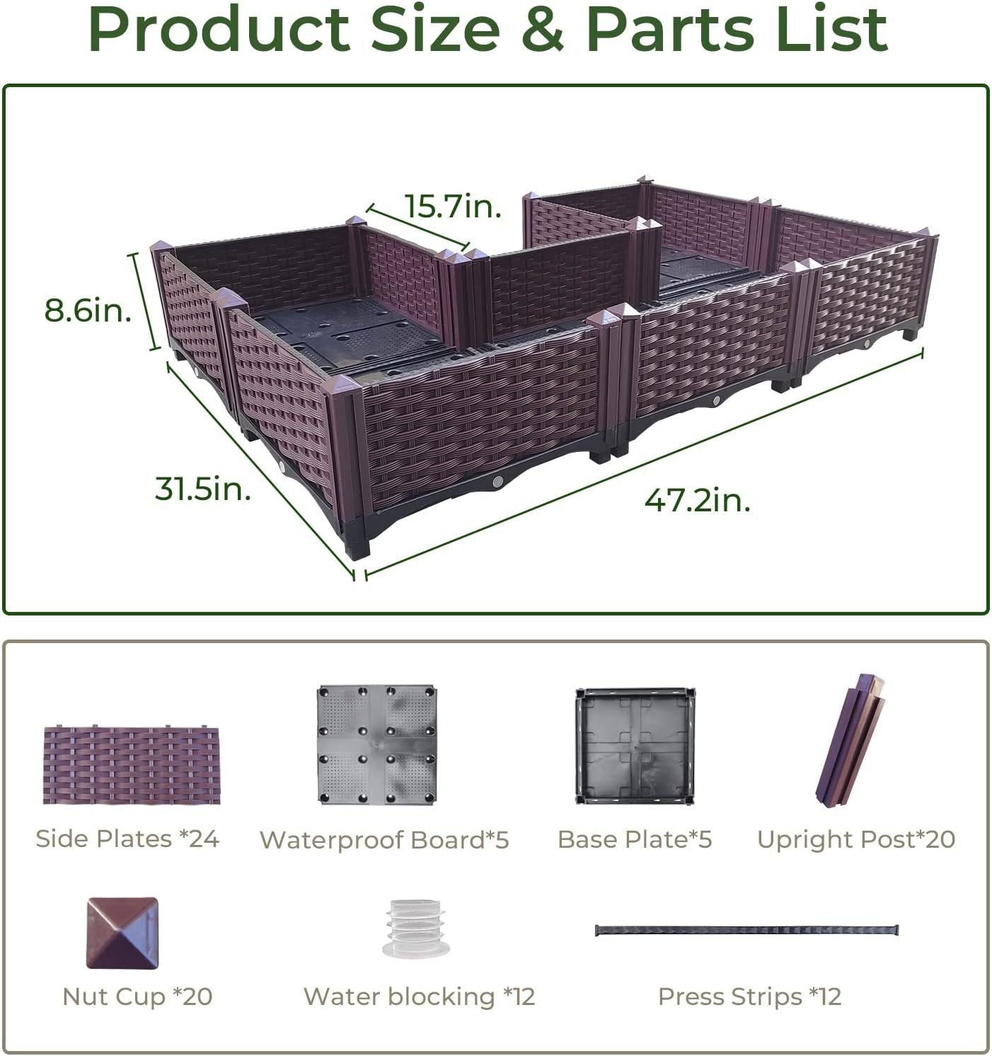 [Durable PP Material]- Our plastic raised garden bed is made of reinforced PP materials with high durability, lightweight and reliable structure. Its sturdy frame can hold the heavy soil more stable, weatherproof for long-term use.