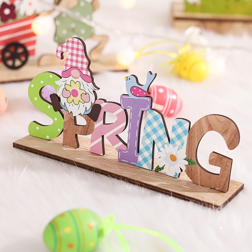 Home > 1pc Easter Bunny Gnome & Letter Design Ornament ; Easter Tabletop Wooden Decorations Signs; Cute Rabbit Gnome DIY Art Crafts; Home Decor; Easter Party