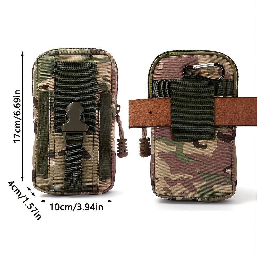 Features: 1.Cute And Portable 2.A Cool Addition Travel Gear 3.Can Be Attached To A Backpack Or A Belt And Therefore Fits Snugly To Your Trouser's Waist 4.Multi Pockets Inside With A Large Capacity And Many Things Can Be Put In. 5.Can Carry Mobiles; Pens; Cigarettes; Wallets; Carabineers And Other Camping Items 6.Great For Outdoors; Tactical Sports; Hiking; Climbing; EDC Use And Etc ;