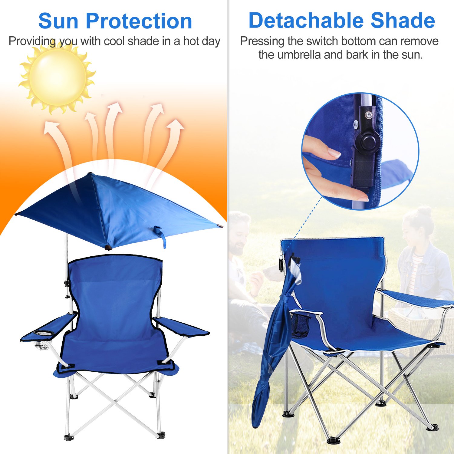 Home > Foldable Beach Chair with Detachable Umbrella Armrest Adjustable Canopy Stool with Cup Holder Carry Bag for Camping Poolside Travel Picnic Lawn Chair