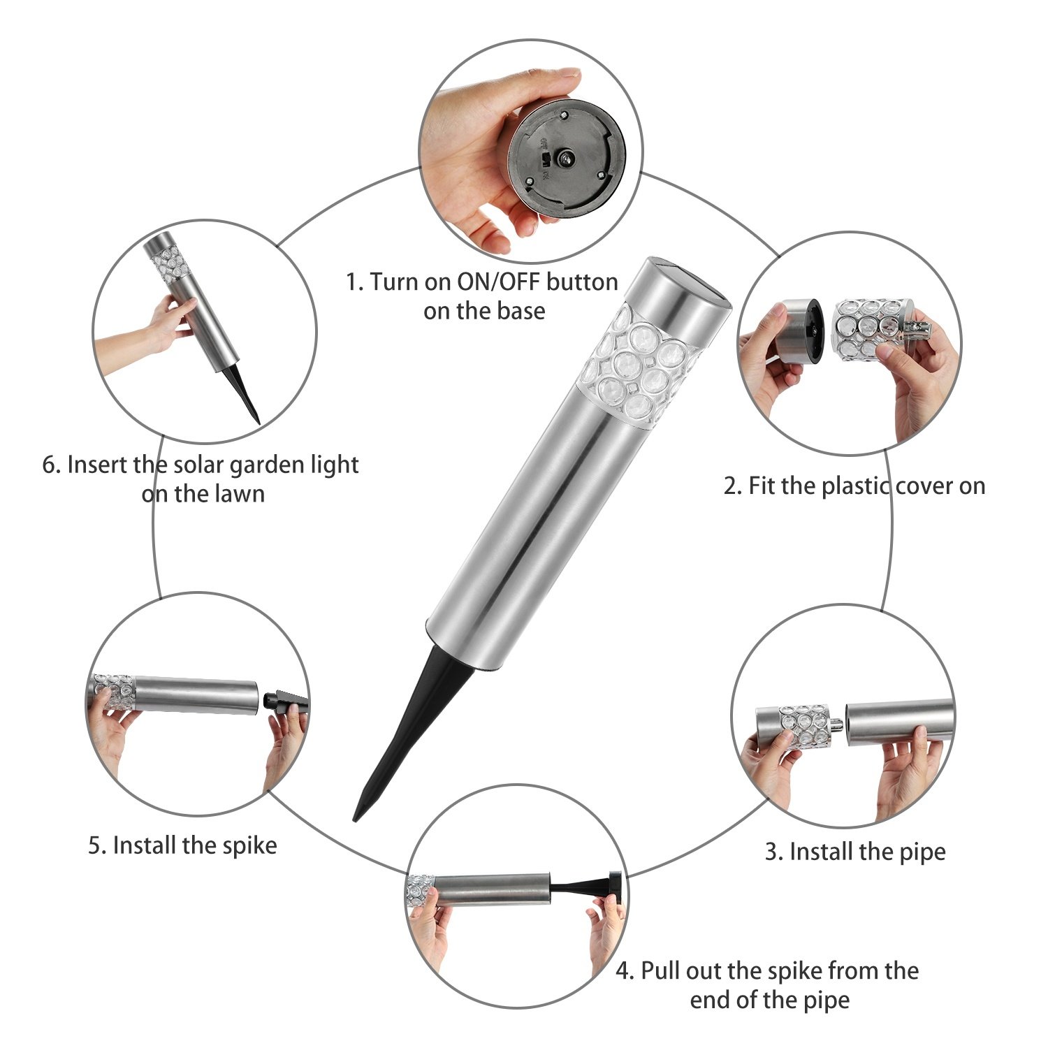 *Durable and Easy Installation*:Our Outdoor Solar Light adopts stainless steel material and ABS spike shell,anti-oxidation,abrasion-resistant and durable.